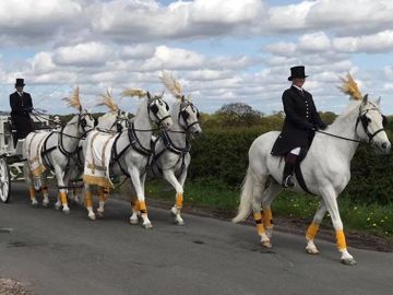 To complete the occasion, a large selection of professional drapes and plumes to adorn the horses and match any preferred colour scheme can be chosen.
